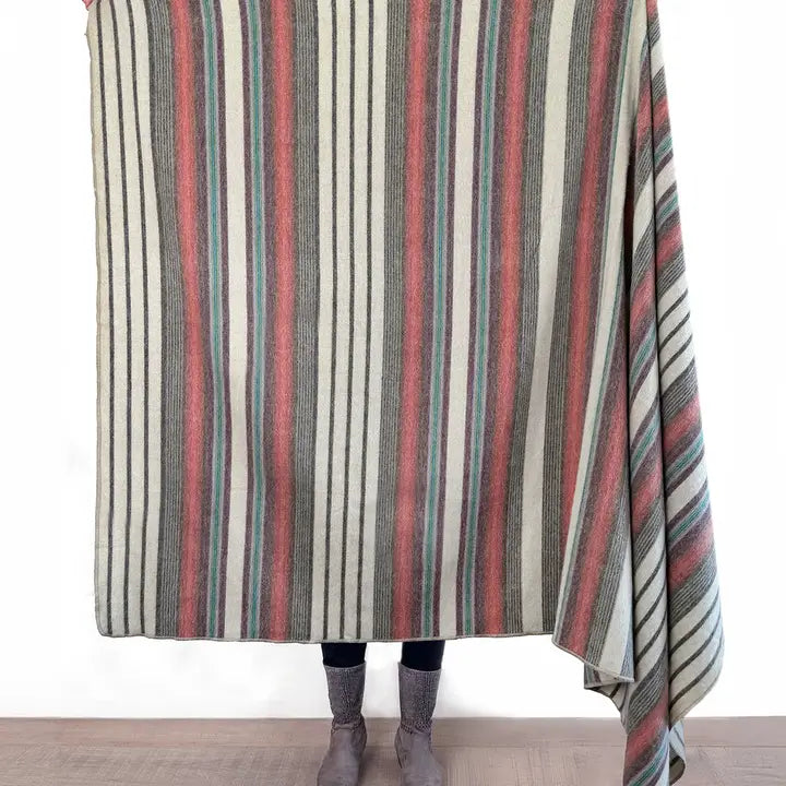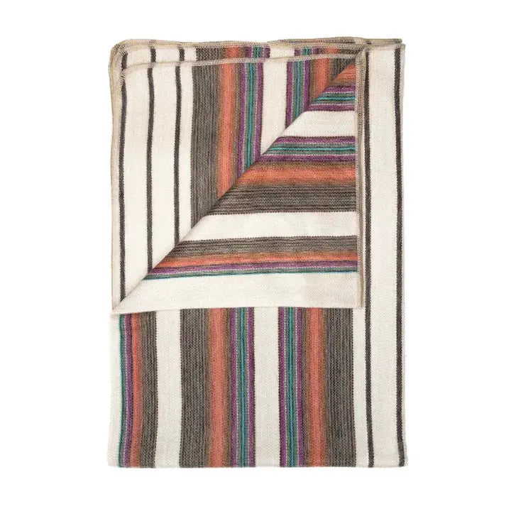 Inspired by desert markets and artisan craft, the Oasis Alpaca Blanket features a vibrant interplay of earthy neutrals, vivid teal, magenta, and warm spice tones—woven into a bold, striped layout. Lightweight yet insulating, this sustainable alpaca blend offers superior softness and all-season comfort. A perfect choice for curated home collections, upscale resorts, or corporate gifting programs seeking globally inspired design with timeless appeal. Ideal for Fall/Holiday or year-round color story merchandising. Perfect for: Gifting, cozying up by the fire, or adding a pop of rich color to neutral decor.