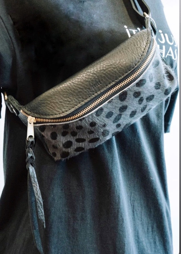 Designed as a chest pack that can double as a fanny pack & created with full grain leather; the finish is luscious and silky with a natural grain. Oils allow the leather to remain supple and soft from the start. A roomy interior that manages to stay slim and close to the body.