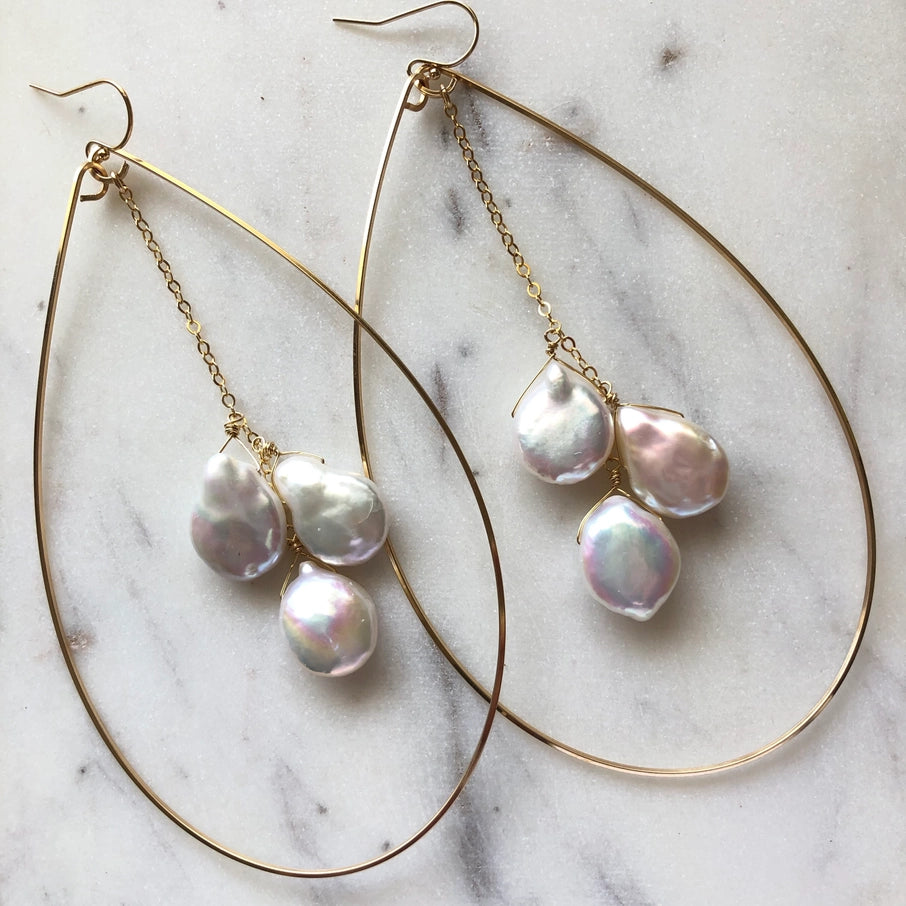 Enter these gorgeous pearls, in a SUPER lightweight hoop- stunning enough that they have graced the ears of brides, versatile enough to wear with your favorite cutoffs and white t shirt.