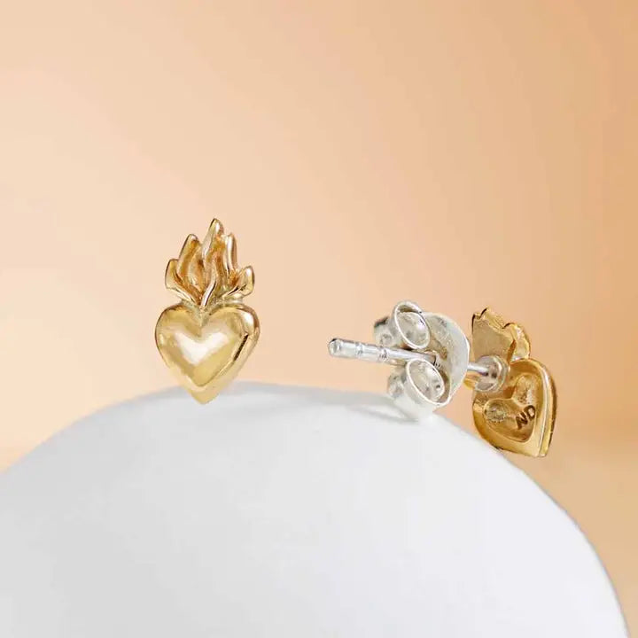 The sacred heart is a medieval symbol of Christ's sacrifice. It signifies the redeeming love of God as the source of all illumination and happiness. These radiant heart earrings are fiercely romantic. Wear them as comforting reminders of enduring love and faith.
