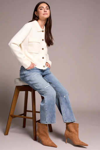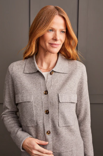 A seamless blend of laidback comfort and structured shape, this collared sweater cardigan puts forth a sophisticated style that's easy to wear. It features a long-sleeve design, faux horn button closures in the front, and double knit jacquard fabric that's soft and smooth.