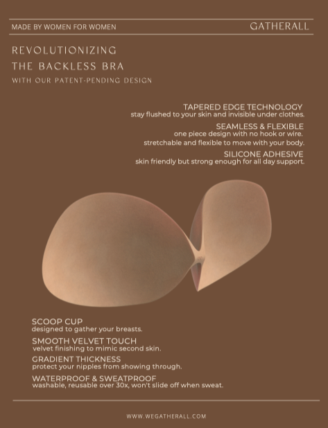 Gatherall bra is more than a bra - it’s a reusable medical grade adhesive silicone bra that gives you strapless, backless, wireless, washable, reusable and flexible support.