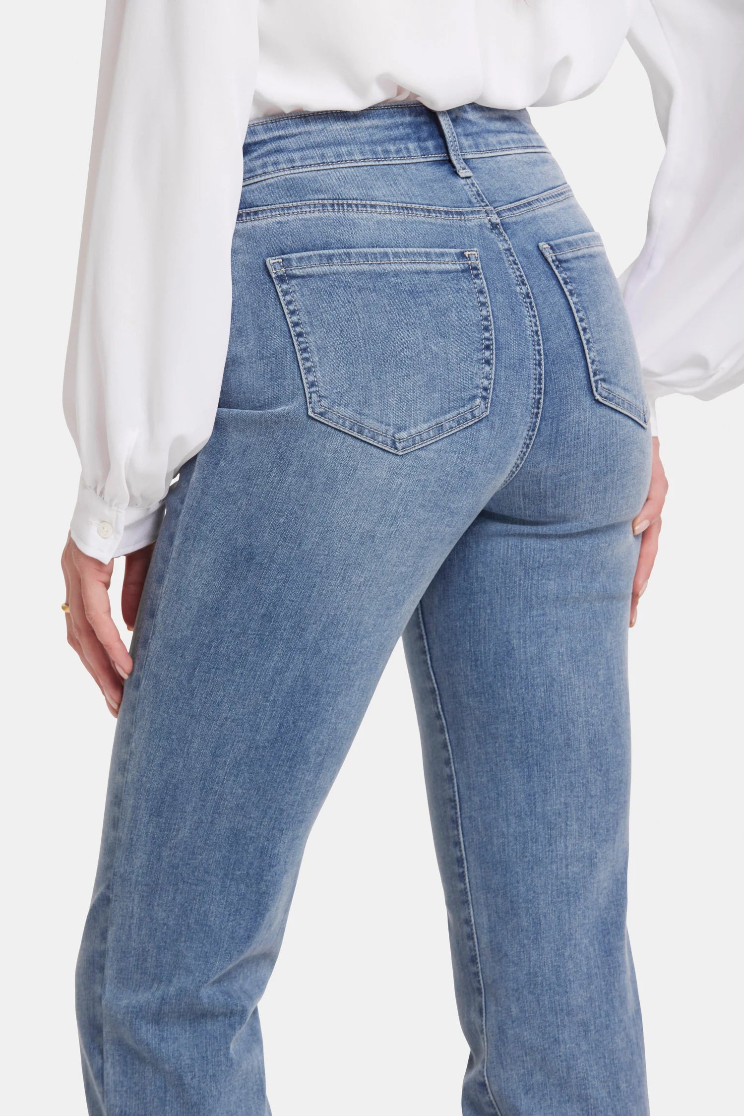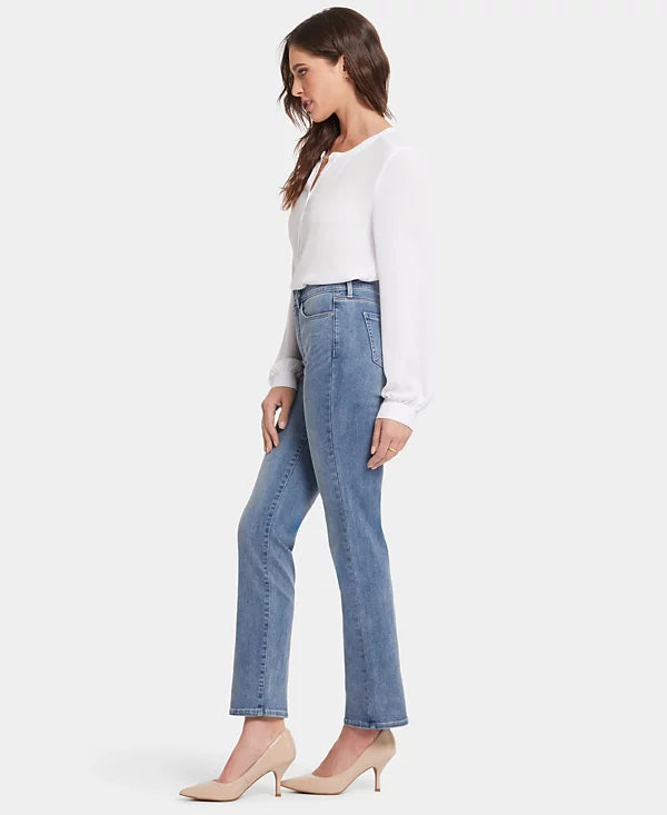 You can't go wrong with our iconic bestselling fit. The curve-sculpting, figure-elongating construction of NYDJ's Marilyn Straight Jeans with High Rise and 31 Inch Inseam pairs well with everything, in a classic straight-leg silhouette. Plus, our Lift Tuck® Technology uses a proprietary slimming panel with a patented criss-cross design to shape and support your curves. Finished with classic five-pocket styling, zip fly and button closure.