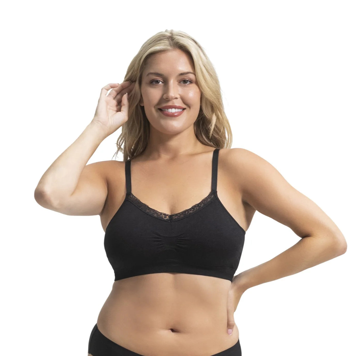 One size fits almost every body. Soft & Stretchy, it Comfortably fits sizes 32A to 36D. No kidding – they really do fit that size range perfectly!