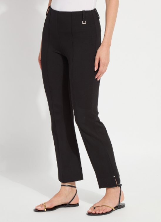 Polished, comfortable, and endlessly wearable, the Lyssé Melrose Ankle Baby Boot Ponte Pant is the perfect pull-on trouser for everyday dressing. Crafted in smooth ponte knit, this style offers a sleek, flattering fit with a subtle baby-boot silhouette and an easy ankle length that pairs effortlessly with flats, sandals, or heels. Clean lines keep it refined, while the stretch fabric moves with you from desk to dinner. Finished with a streamlined waistband and minimal hardware detail, the Melrose delivers tailored look—without the fuss.