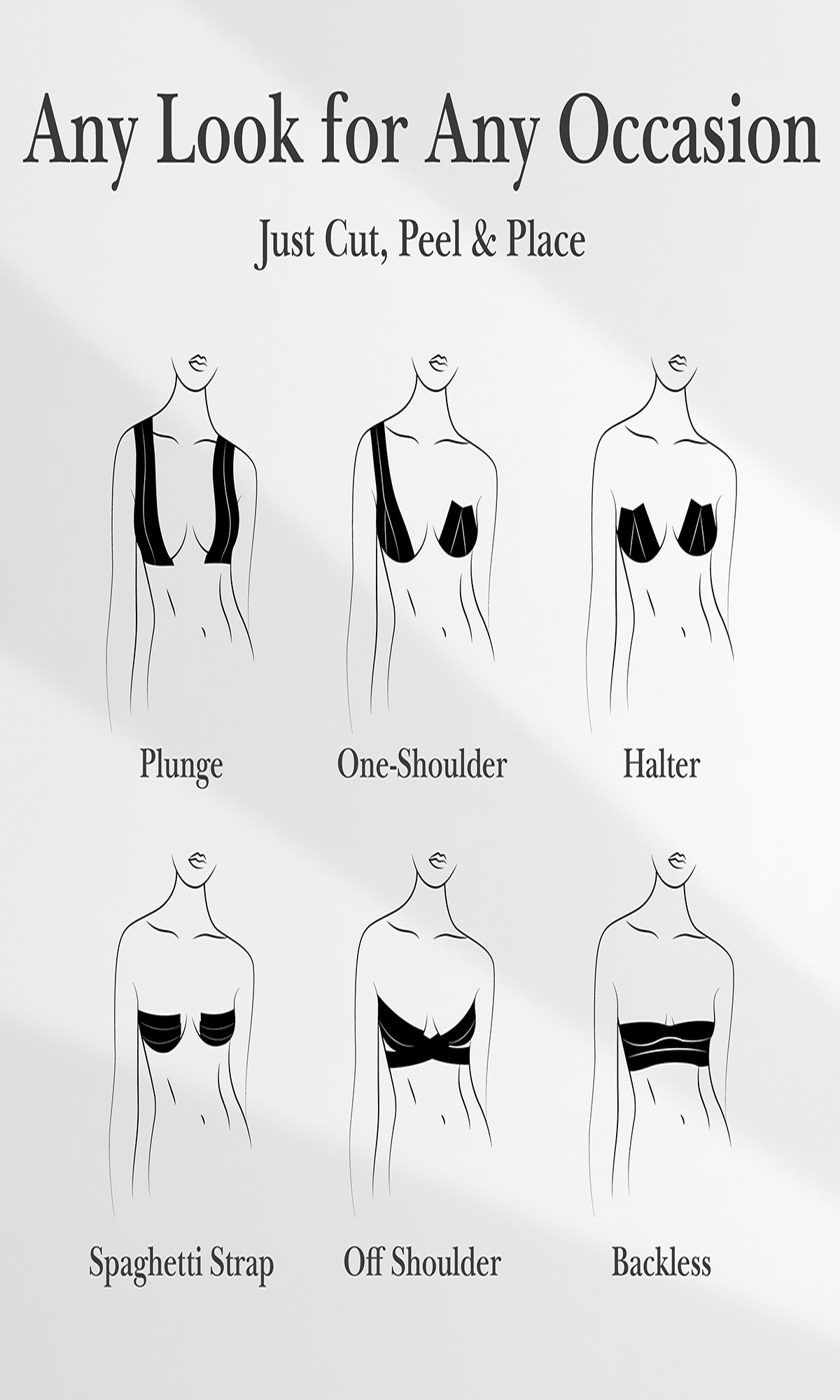 VERSATILE - The breast tape is fully customizable for different occasions in the best style that works for you: plunge, one-shoulder, halter, off-shoulder, backless, etc. It can be worn with a pair of NIPPIES nipple covers for additional coverage.