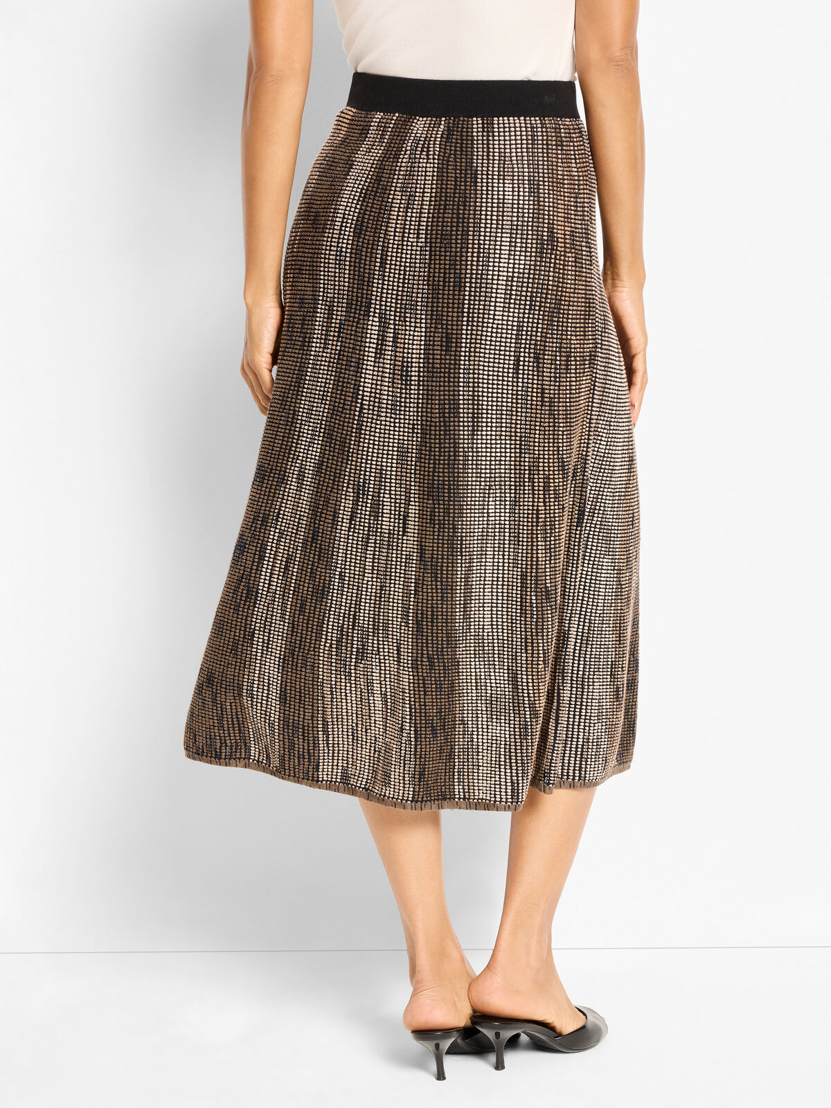 The timeless texture of a sweater, the femininity and fun of a skirt, in alluring ombre tones knit with space dye for even more texture. We designed this silo to be effortless: pull-on and all-day comfy with a hem that falls to a mid-calf midi length. Mindfully Made from fully fashioned knitwear that reduces waste.