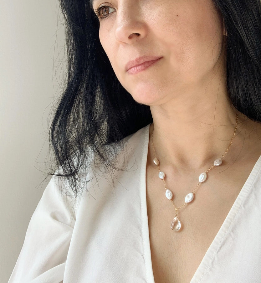 Oval Pearl Drop Necklace