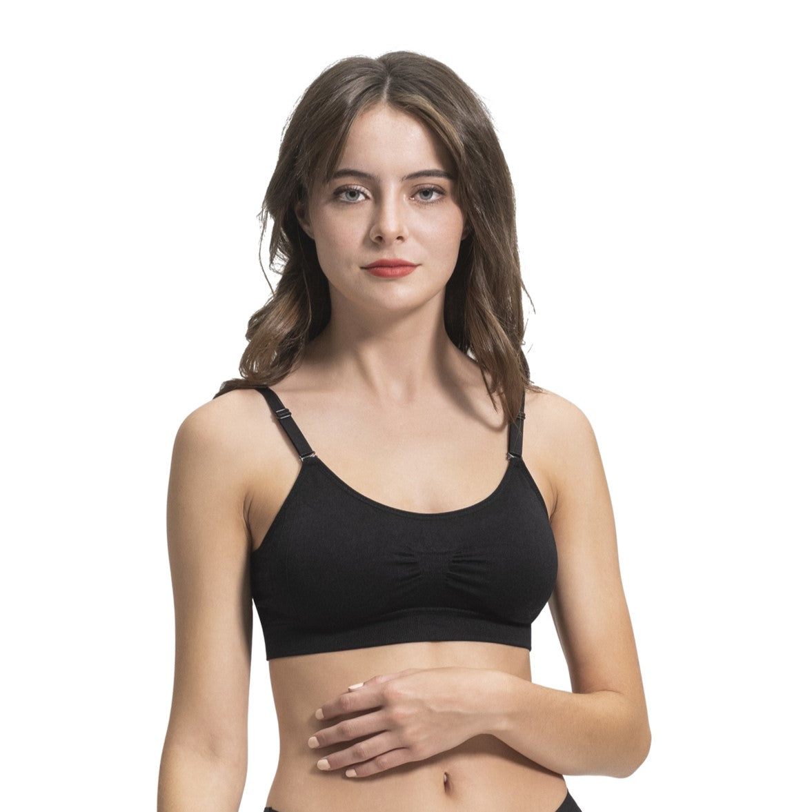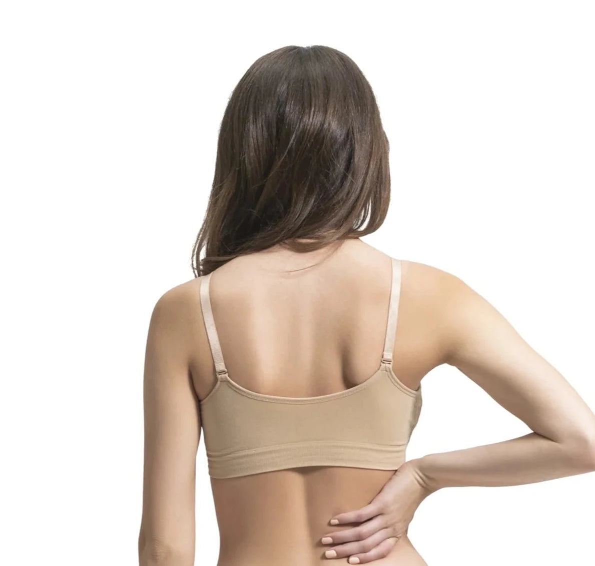 No kidding – they really do fit that size range perfectly! They are all seamless, so no hooks or clasps. The back is smooth. Straps are wider, adjustable, & removable and each has removable, reversible improved more natural padding. The pads are extremely soft and stay in place with the versatile pocket that can be used to hold prosthetics in place of the pads. The fabric is made of an ultra soft nylon and spandex blend. Perfect for everyday wear, work, the gym, yoga, and so much more!