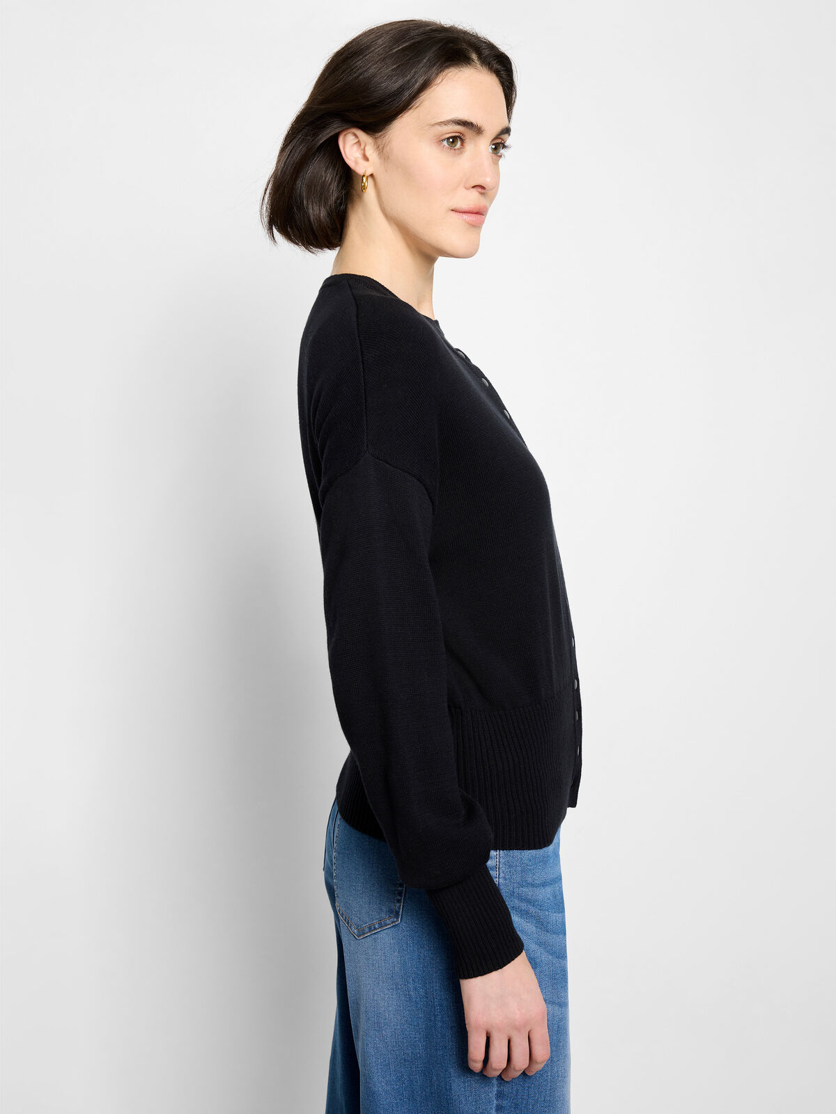 Meet your new layering MVP: the Snap It Up Pure Cotton Cardigan. Made from breathable midweight cotton with an easy fit, this versatile cardi is designed to go the distance -- wear it snapped all the way, open over a tee, or partially closed for a modern twist. A clean round neck, long sleeves, and dropped shoulders lend it a relaxed feel, while the hip-length hem keeps it polished. Finished with subtle snap closures, it pairs effortlessly with other Pure Cotton styles. Mindfully Made from "no waste" knitwear, eliminating textile waste.