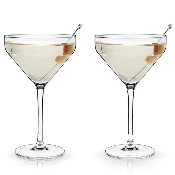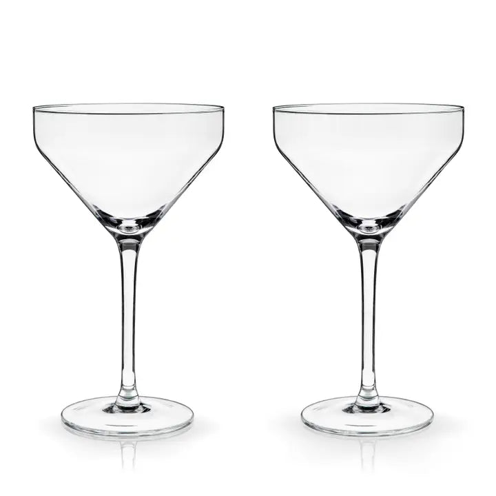 Ideal for a classic martini whether dirty or dry, these Raye stemmed martini coupes are crafted from sparkling lead-free crystal and have a modern angled silhouette.